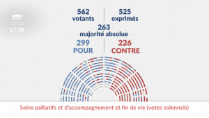Alors que plus de 2600 amendements avaient été déposés par seulement quelques députés de droite conservatrice et du Rassemblement rational, le texte a été adopté en première lecture par 305 voix pour, 199 voix contre et 57 abstentions. Vous pouvez retrouver pour la première lecture le scrutin public et le détail des votes ici.